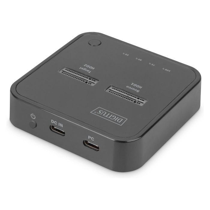 Digitus Estación de acoplamiento dual SSD M.2 NVMe con función de clonado offline, USB-C™, Alámbrico, USB 3.2 Gen 2 (3.1 Gen 2) Type-C, Negro, SD, 2 TB, 10 Gbit/s