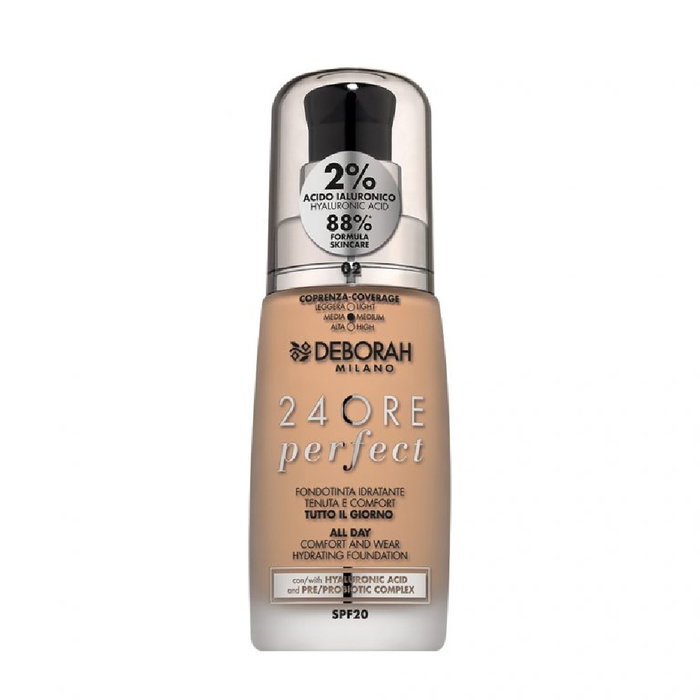 Deborah Maquillaje 24Ore Perfect True Beige Larga Duración Cuidado Facial Ácido Hialurónico SPF 20