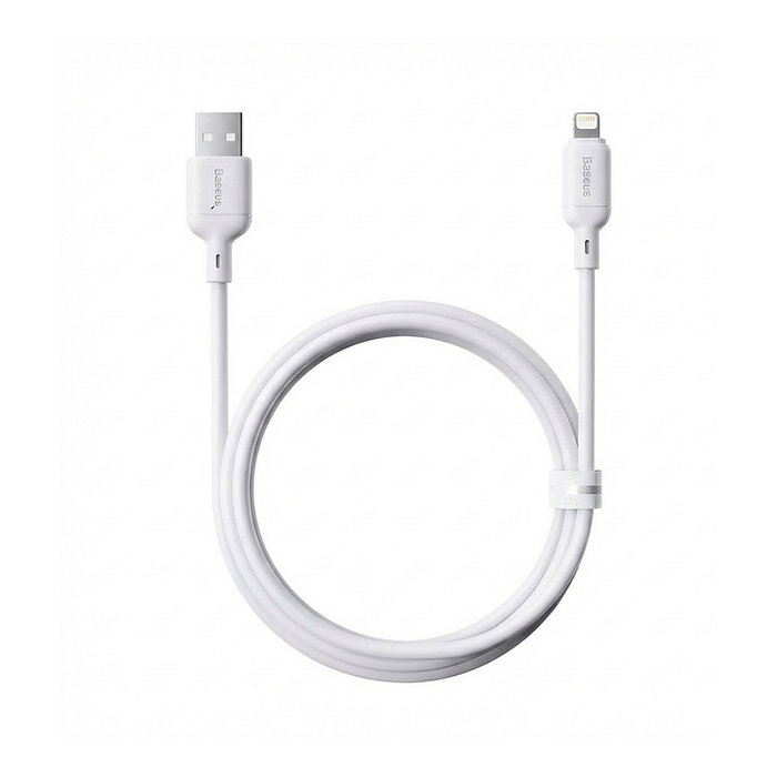 Baseus Silky Series Cable de Carga USB para iPhone, 2.4A, 1 Metro, Blanco - Compatible con dispositivos Apple, cargador rapido, carga eficiente, funda suave y duradera