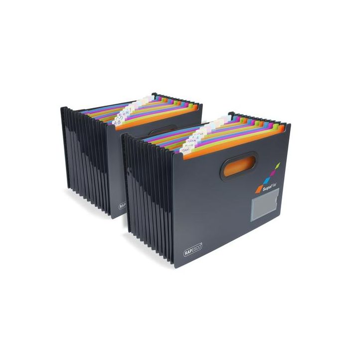 Bastidor Carpetas Colgantes Rapesco Supafile A4 13 Pocket Multicolres (1300 Hojas) Negro Pack De 2