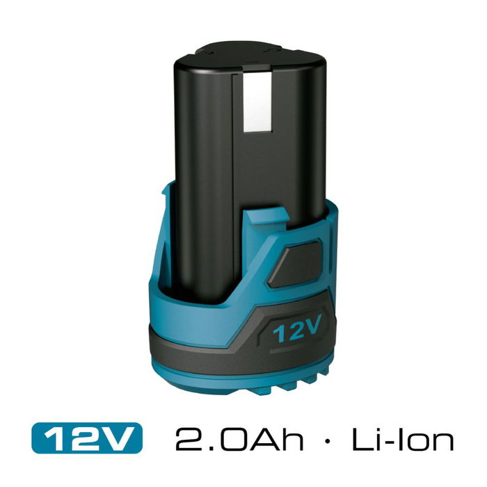 Batería 2.0 ah 12 v, diseño compacto, pestaña de bloqueo, con conector usb-c. 12v-b2. medida 44 x 86 mm