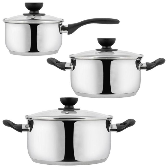 - Incluye: _ Cazo d.16 h.8,5 cm de 1,6 L de capacidad con medición de 0,5 L en el interior: 0,5-1,5 L _ Cacerola d.20 h.10 cm de 3 L de capacidad con medición de 0,5 L en el interior: 1-3 L _ Cacerola d.24 h.12 cm de 5,2 L de capacidad