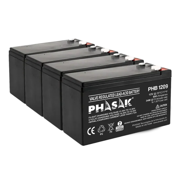 Plomo-Ácido | Baterías selladas PHASAK de plomo-ácido de 12V de 9 Ah.Compatibles con los modelos de SAI/UPS PHASAK, que incorporen baterías de las mismas características.