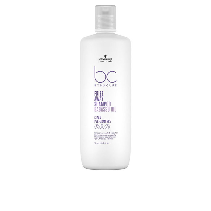 Champú antiencrespamiento BC FRIZZ AWAY Micellar Shampoo de Schwarzkopf. Este champú de la línea Bonacure está especialmente formulado para limpiar suavemente el cabello rebelde, grueso y encrespado.