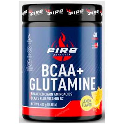 FIRE NUTRITION BCAA + Glutamina con Vitamina B2 Sabor Limón 400g para Recuperación Muscular y Síntesis de Proteínas