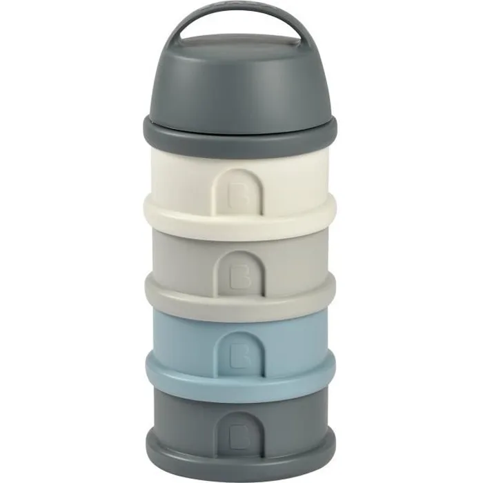 El dosificador de leche en polvo Béaba es un accesorio práctico y funcional diseñado para facilitar la preparación de biberones desde el nacimiento. Cuenta con cuatro compartimentos independientes, cada uno con una capacidad de 330 ml, que permiten almacenar y organizar de forma segura las dosis precisas de leche en polvo para varias tomas, lo que resulta ideal para padres y cuidadores en desplazamientos o durante la noche. Su diseño combina colores azul y gris, aportando una estética moderna y neutra que se adapta a cualquier entorno infantil. El producto está fabricado con materiales aptos para el contacto con alimentos, garantizando la higiene y la conservación adecuada del contenido. Además, su sistema de cierre asegura que el polvo se mantenga protegido de la humedad y otros contaminantes, manteniendo su frescura hasta el momento del uso. Compacto y ligero, este dosificador facilita la dosificación rápida y exacta, evitando derrames y minimizando el contacto al preparar el biberón. Compatible con todas las leches en polvo y recomendado para bebés desde 0 meses en adelante, este modelo Béaba se presenta como una solución organizada y eficiente para la alimentación infantil, combinando practicidad con un diseño pensado para el día a día de las familias. En conjunto, ofrece una propuesta fiable y funcional para simplificar la preparación de la leche en polvo en cualquier situación.
