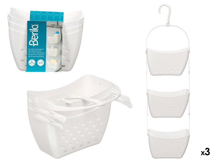 Berilo Set 3 Cesta Organizadora Baño Colgar Blanca Plástico PP 22x17x13 cm (Set de 12)