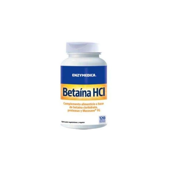 ENZYMEDICA Betaina Hcl 120 Cápsulas Vegetales, Clorhidrato de Betaína, Proteasas y Mucosave FG, Vegano
