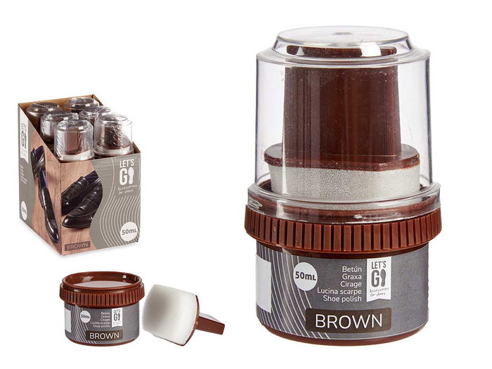 Arte Regal Betún para Calzado Marrón con Esponja Limpiadora 50gr - 6x9x6 cm (Set de 24)