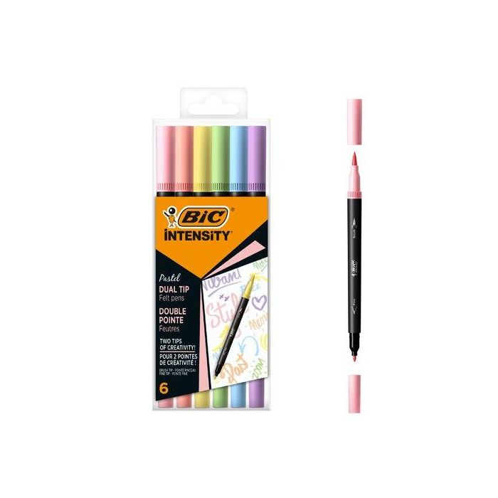 Bic Rotulador Intensity Punta Fina-Pincel Colores Pastel Blíster 6 Ud