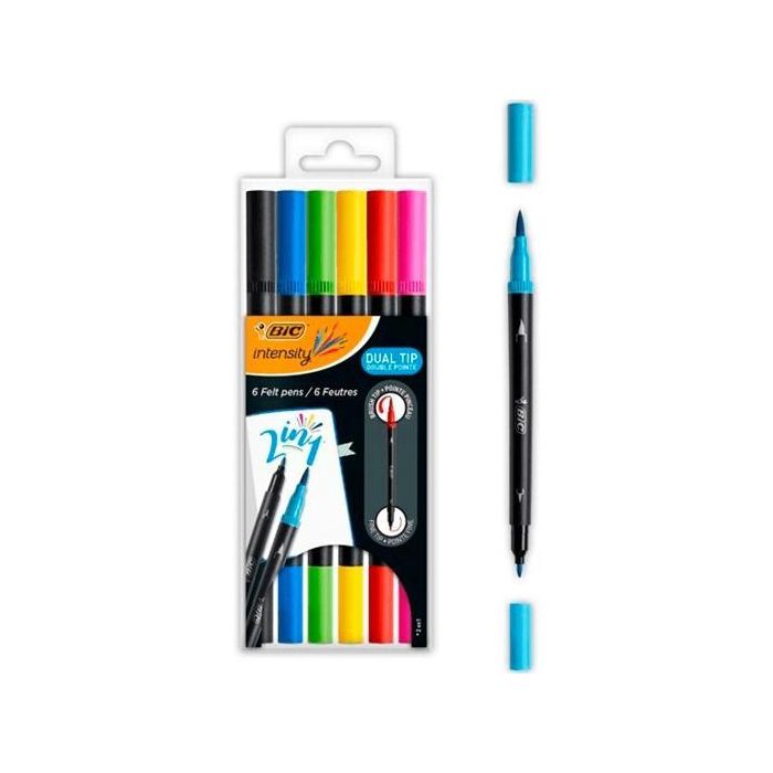 Bic Rotuladores Intensity 2 en 1 Punta Fina-Pincel Colores Surtidos Vivos Blíster 6 Ud