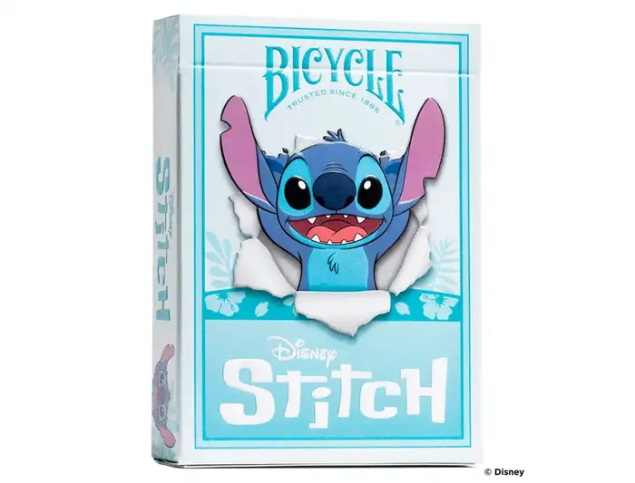 Baraja de cartas Bicycle inspirada en Disney Stitch. Edad recomendada: 6 años. Juegos: Poker, Magia, Cardistry, Coleccionismo. La obra de arte de Stitch se abre paso a través del estuche y entra directo a nuestros corazones con la baraja de cartas Disney Stitch de Bicycle. Lleva la magia hawaiana de Ohana a tu familia. A lo largo de las 54 cartas, las figuras muestran al Experimento 626 haciendo travesuras junto con su boojiboo Angel.