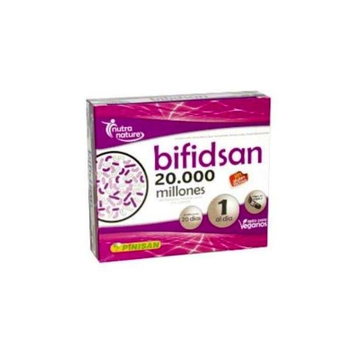 PINISAN Bifidsan 20.000 20Cap. Cápsulas Probióticas y Prebióticas 20.000 Millones de UFC, Vegano, Sin Gluten, Sin Lactosa