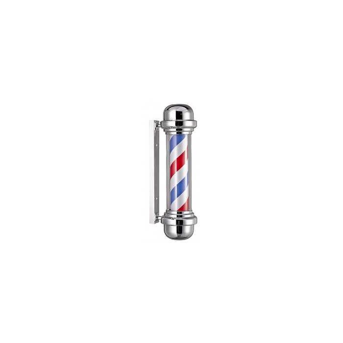 Con soporte para fijar a la pared, luz y eje interior, que hace girar la combinación de rayas rojas, blancas y azules.
