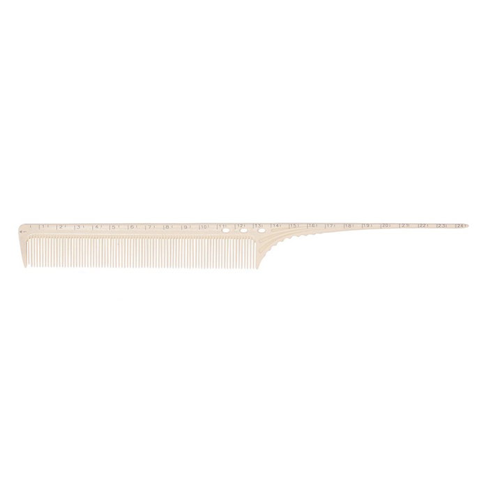 Peines profesionales de gran calidad con regla integrada para mediciones precisas. Se puede medir la longitud del cabello durante el corte o el peinado. Ideal para la enseñanza, fácilmente legible. Material policarbonato, duradero y difícil de romper, resistentes a los químicos y resistentes al calor. Terminación púa perfecta para proteger el cuero cabelludo. Peine púa largo 24,5cm.