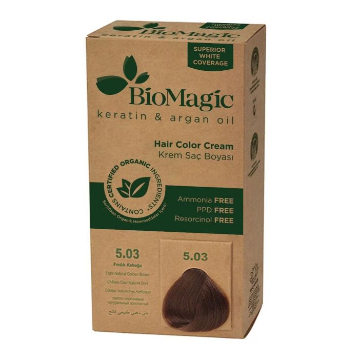Biomagic, Keratin & Argan Oil, Tinte permanente para el cabello, 5.03 , 250 ml *Probador