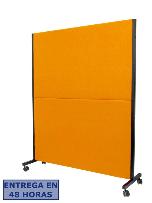 PIQUERAS Y CRESPO Modelo Valdeganga - Biombo separador con ruedas con freno, para oficinas y centros de trabajo, desmontable y con estructura de color negro - Tapizado en tejido bali color naranja.