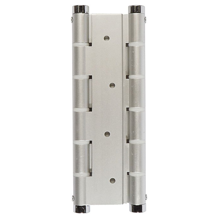 La bisagra doble acción para puertas de vaivén o batientes U5914 en acabado plata sirve para puertas de paso que necesitan abrir en ambos sentidos y volver a su posición.