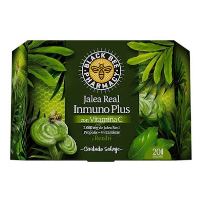 BLACK BEE Jalea Real Inmuno + Reishi 20 Viales Suplemento de Jalea Real y Reishi Fortalecimiento del Sistema Inmunitario