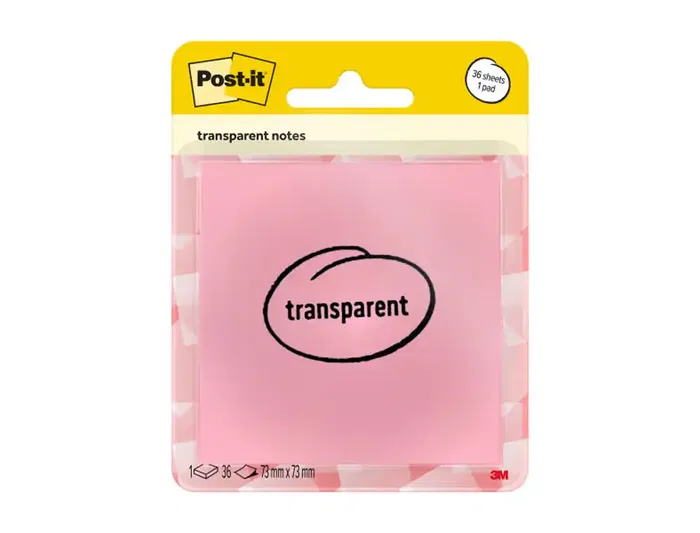 Post-it Bloc de Notas Adhesivas Transparentes Quita y Pon, 73x73 mm, Color Salmón, 36 Hojas, Certificado PEFC