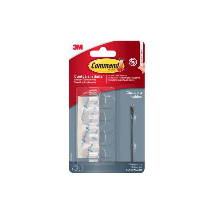 Command 17017clr Clips Redondos Transparentes para Cables, 19 x 32 x 13 mm, 4 uds + 5 tiras