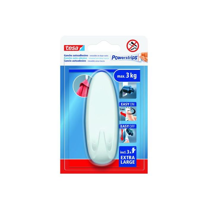 Tesa Powestrips XL Gancho Autoadhesivo Blanco Ovalado Soporta 3 kg