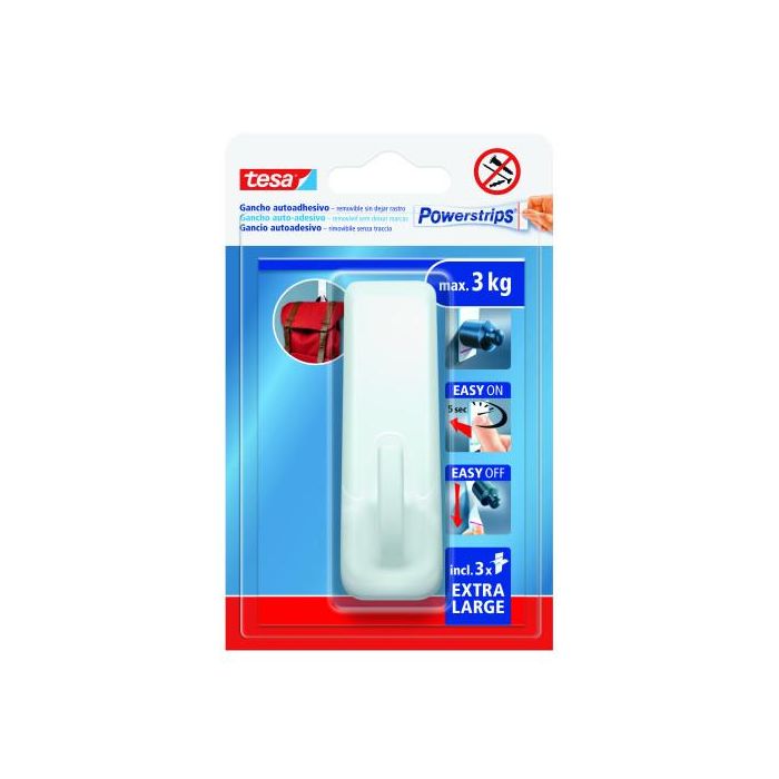 Tesa Powerstrips XL Gancho Autoadhesivo Blanco Rectangular Soporta 3 kg