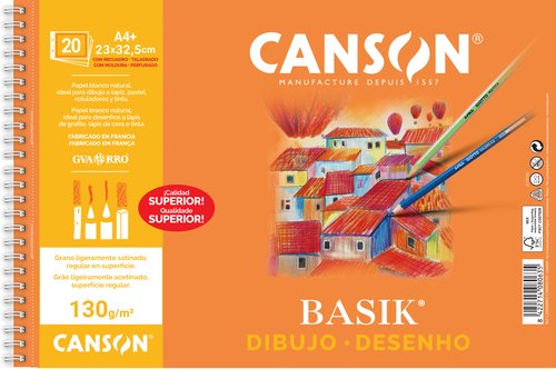 Canson Dibujo Basik. Tipo: Arte de papel, Cantidad de hojas: 20 hojas, Género recomendado: Niño/niña. Ancho: 325 mm, Profundidad: 230 mm .Lleva espiral, está microperforado, con recuadro y taladrado. (bloc).
