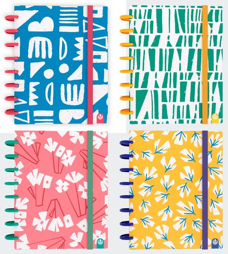 Cuaderno Ingeniox con 100 hojas de papel de 100 gramos, portadas de polipropileno semi rígido, goma elástica de cierre a juego y 11 discos plásticos extraíbles, de 30 mm. Su sistema de encuadernación con discos y hojas extraíbles permite una fácil organización. Colecciona, combina y crea tu propio cuaderno de notas.