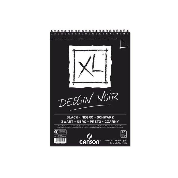 Bloc De Dibujo Canson Xl Black Drawing Con Espiral Doble Grano Fino Y Grueso A4 150G 40H (Set de 5)