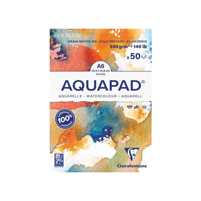 Bloc De Dibujo Clairefontaine Aquapad Encolado Blanco Grano Medio-Fino Tecnicas Humedas A6 300G 50H (Set de 3)