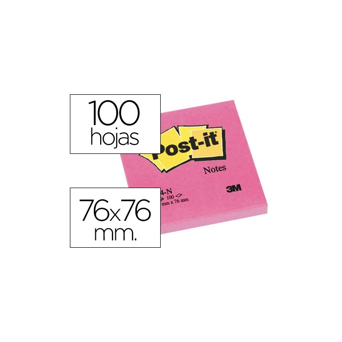 Post-it Bloc de notas adhesivas quita y pon fucsia neón con 100 hojas 76x76 mm