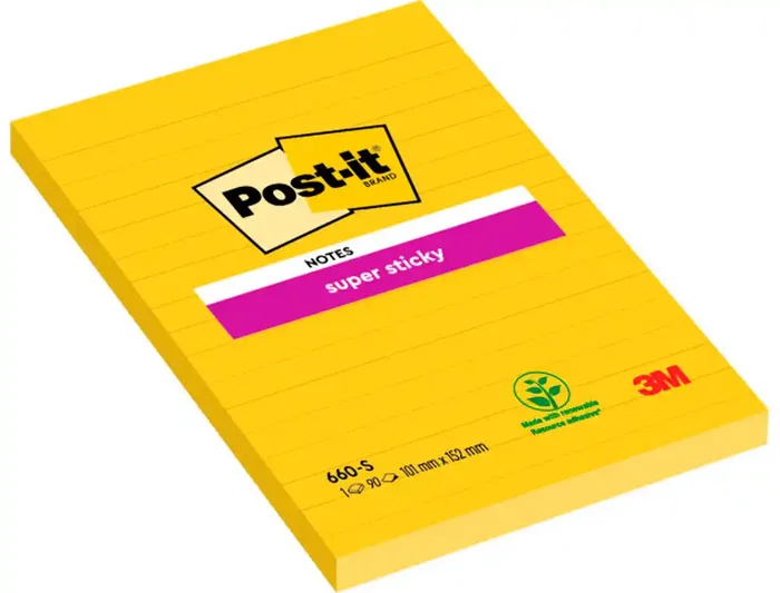 Post-it Bloc de notas adhesivas Super Sticky rayado amarillo ultra 101x152 mm