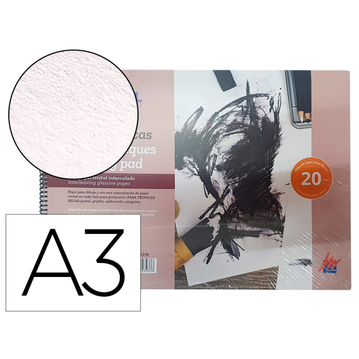 Michel Bloc Dibujo A3 Técnicas Secas 200 gr/m2 20 Hojas con Papel Cristal Intercalado 297x420 mm