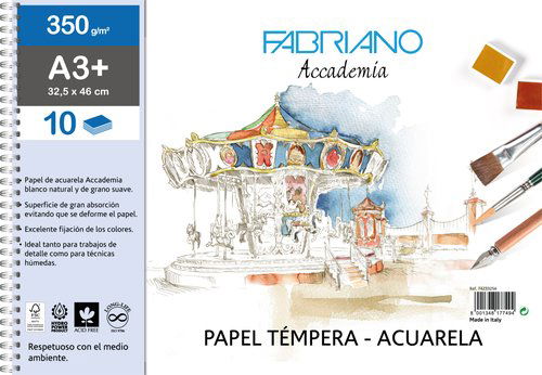 Bloc De Dibujo Fabriano Accademia Con Espiral Liso Tecnicas Humedas A3+ 350G 10H