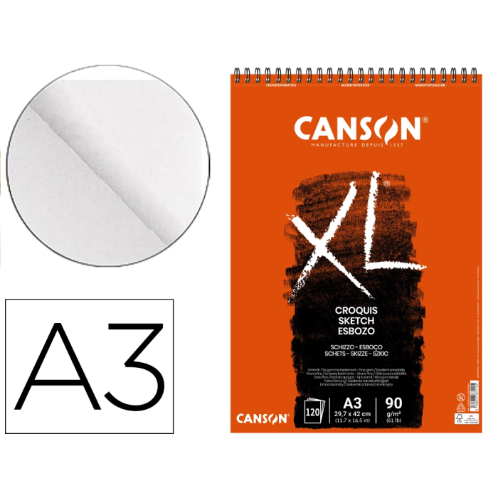 Canson Bloc Dibujo Croquis DIN A3 Microperforado 29,7x42 cm 120 Hojas Grano Fino 90 gr/m2
