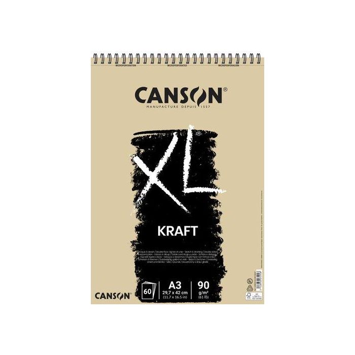 Bloc De Dibujo Canson Xl Kraft Con Espiral Papel Verjurado A3 90G 60H