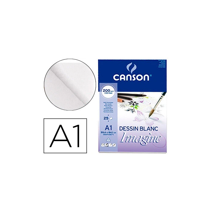 Canson Imagine Bloc Dibujo Multitecnicas DIN A1 Encolado Liso 59,4x84,1 cm 25 Hojas 200 gr/m2
