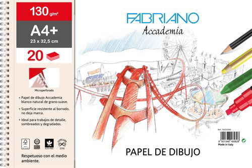 Bloc De Dibujo Fabriano Accademia Con Espiral Liso A4+ 130G 20H