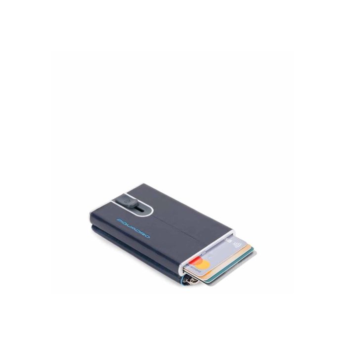 Blue Square, Tarjetero de cuero, Sistema deslizante cuadrado con bolsillo para monedas con cremallera, PP5359B2R-BLU2, Azul, Para hombres