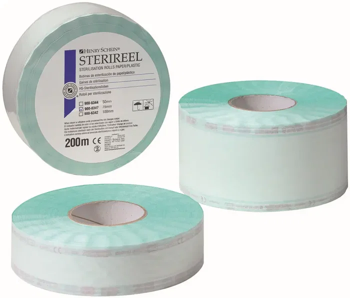 Rollo de esterilización Sterireel, ideal para el envoltura de instrumentos y dispositivos médicos. Cuenta con un tamaño de 100 mm de ancho por 200 metros de largo.
