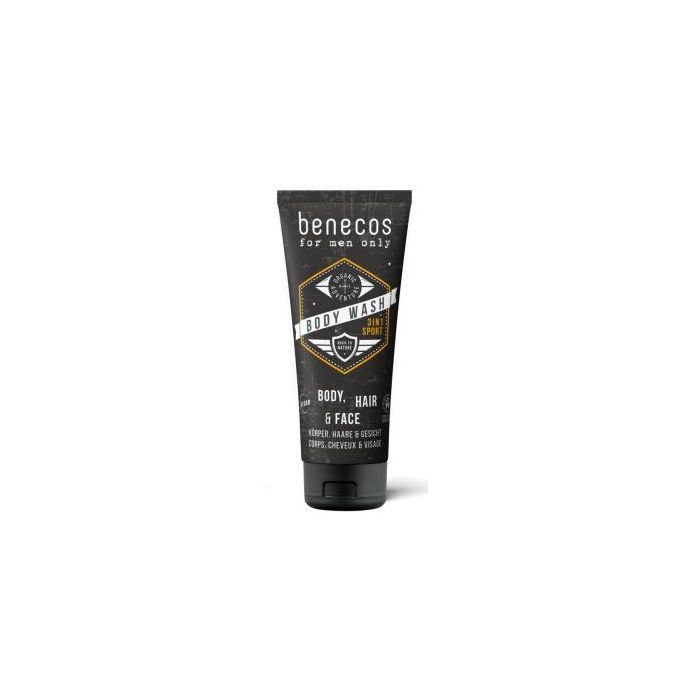 Indicaciones: Benecos for men only Body Wash 3 in 1 Vegano 200ml. Gel de baño 3 en 1 para cuerpo, rostro y cabello. El toque final de frescura para un verdadero impulso energético con hidrolato de vervain y el poder de 7 extractos orgánicos seleccionados.