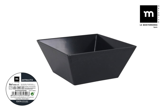 La Mediterranea Bol Melamina Antracita 18 cm x 8 cm (24 Unidades)
