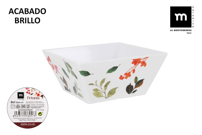 Bol Melamina Petunia 18X8Cm Brillo Md