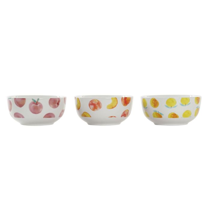 DKD Home Decor Bol Porcelana Frutas Naranja Rojo Blanco 13.5 x 6.5 x 13.5 cm (12 Unidades) Apto Microondas Lavavajillas