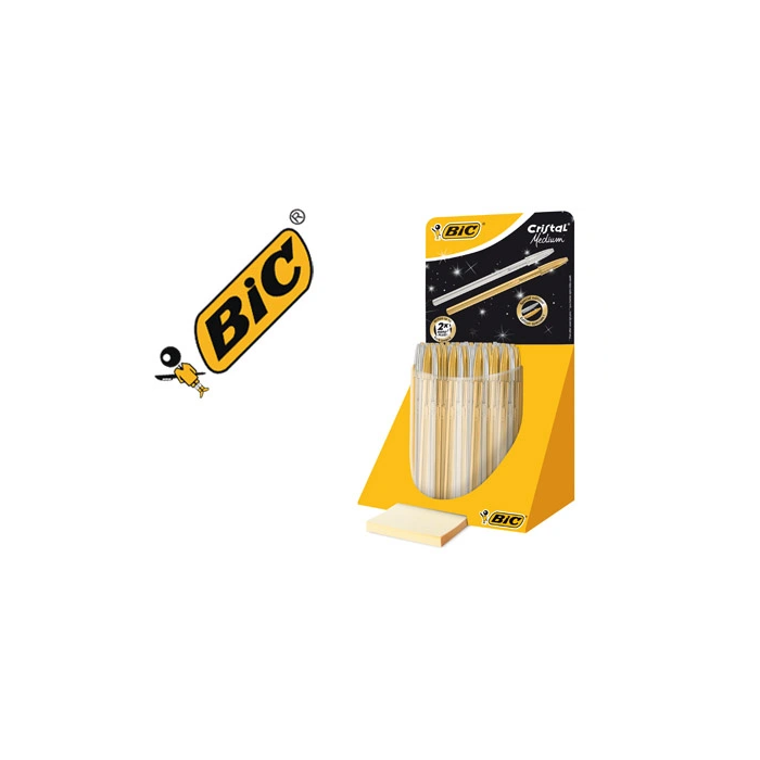 Bic Cristal Linea Celebration Bolígrafo Dorado y Plateado Expositor 40 Unidades Surtidas Tinta Azul y Negra 1 mm