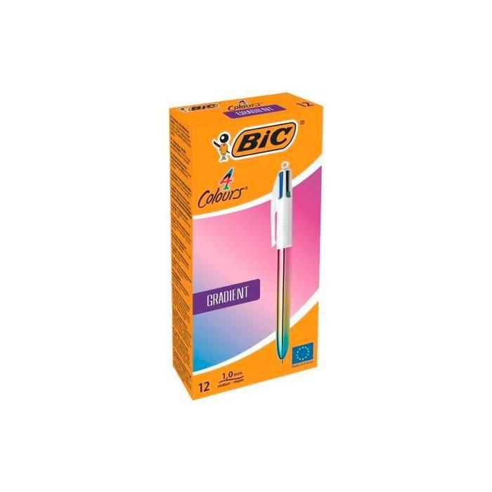 Bic Bolígrafo 4 Colores Gradient Cuerpo Blanco-Multicolor Caja 12 Ud Punta Media 1 Mm Trazo 0.32 Mm