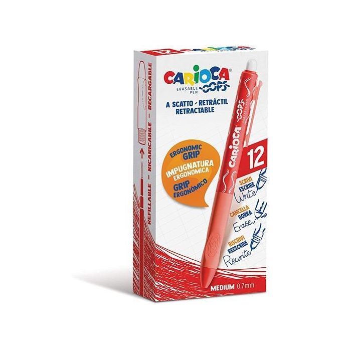 Carioca Bolígrafo Tinta Borrable Oops Retráctil 0.7 mm Monocolor Rojo Caja 12 Unidades