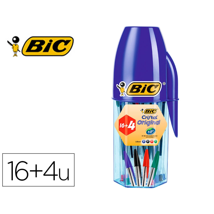 Bic Boligrafo Cristal Mega Tubo 16+4 Unidades Colores Surtidos 8 Azul / 5 Negro / 4 Rojo / 3 Verde