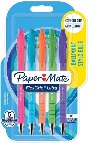 BOLIGRAFO PAPER MATE RETRACTIL FLEXGRIP PASTEL BLISTER DE 5 (tinta negro)
